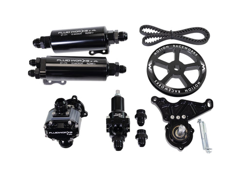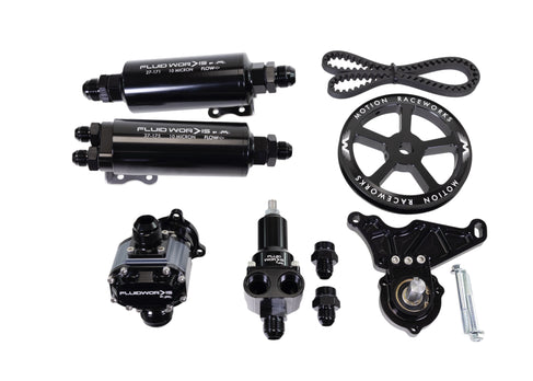 Our complete kit takes the guess work out of compatibility of filters, regulators, and pumps and gives you the easy button for a solution. Note: ATI hub and balancer will need to be purchased to drive this fuel system. We do not currently sell this hub or balancer, see notes below.