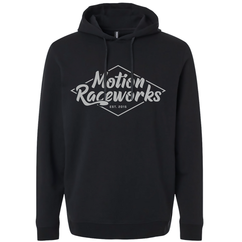 This black hoodie features a light grey, retro Motion logo in a clean diamond design centered on the front. The hidden pockets, double-layer 3 panel hood, and 4-way stretch give this hoodie a sharp look without sacrificing comfort or performance.