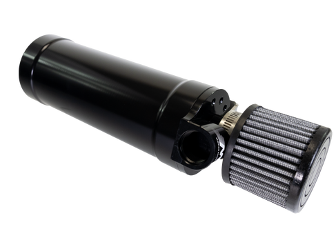 Many have seen our billet top loader catch can and love it. While our standard catch can has proven highly effective and more than adequate, for years of requests for a larger 1 qt catch can to satisfy Sports Car Club of America (SCCA), National Auto Sport Association NASA, Formula Drift, Thunder Roadster Series (NASA) and more have beee made. So we created our XL billet catch can. This will result in the same high performance baffled catch can attributes but with larger capacity.