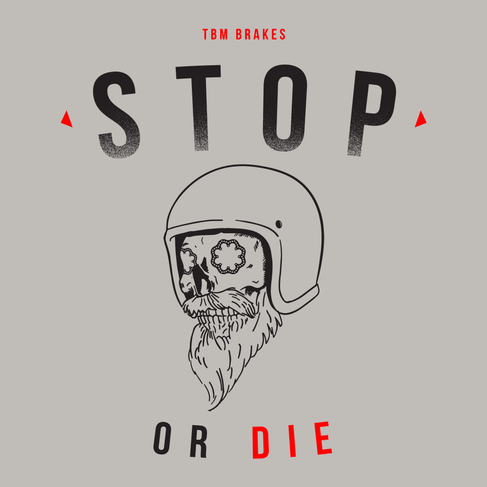 Our Stop Or Die Skull design features a Next Level Cotton gravel gray t-shirt with a tbm logo on the front (breast pocket location) and a Stop Or Die skull design on the back.